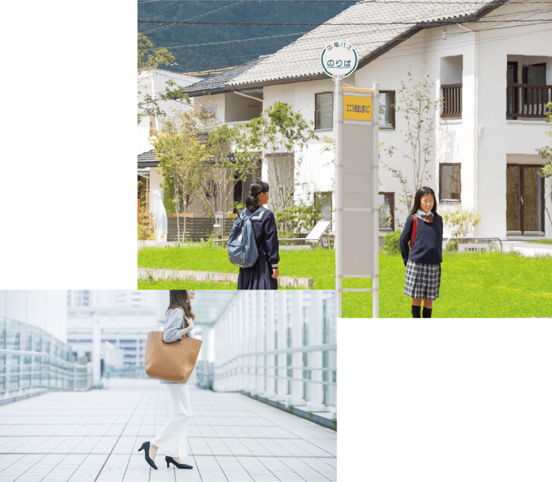 保育園、幼稚園、小中学校などの教育施設や塾などの習い事の場も団地内に揃う安心の子育て環境で、通学も安心です。また、登下校時の犯罪などからお子様を守ることを目的に、販売センターやタウン内企業・店舗、各ご家庭など、138ヵ所が「こども110番の家」に登録。伴南地区青少年健全育成連絡協議会と連携し、お子様の成長と安全を見守ります。