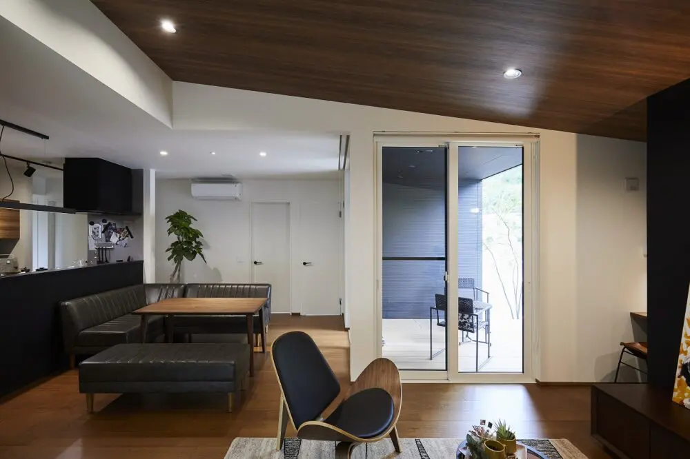 2階部分のない平屋の場合、ある程度自由に天井の高さが設定できるのも魅力のひとつ。そのため屋根の勾配の形に沿って設計・デザインする“勾配天井”との相性の良い建物です。
