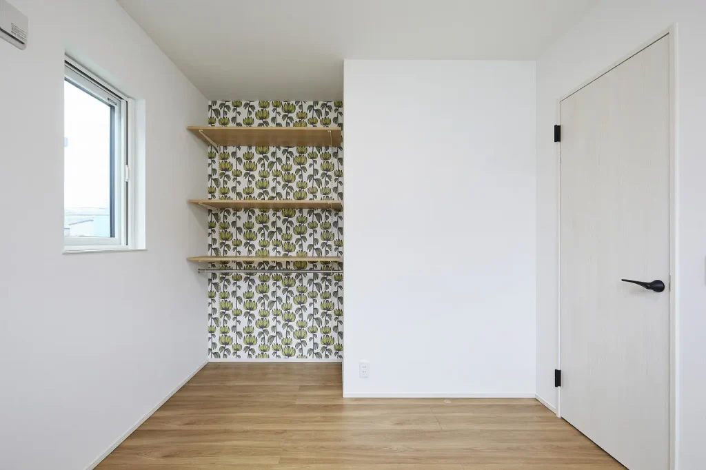 一部分の壁だけの色や柄を異なるデザインにするアクセントクロスは、空間をグッと引き締めてくれます。例えばキッチンや洗面所などの水回りのスペースはどうしても生活感が出てしまいがちですが、タイルや木材・柄物のクロスなどを張り、背板がない収納棚を使えばモノの間からちらりとのぞいて印象的に魅せてくれます。