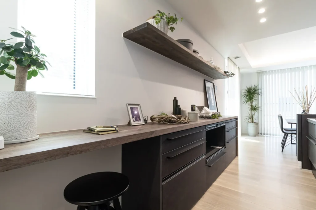 造作家具なら室内のデザイン性や素材などにも調和させやすく、スペースに合わせてカスタマイズできるのでより生活にフィットした収納が実現できますよ。