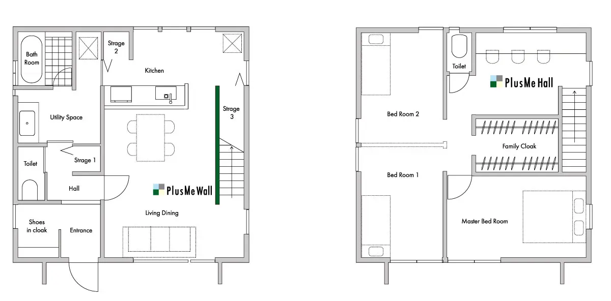 ・間取り 3LDK+WIC+PlusMe Hall(ユーティリティスペース)