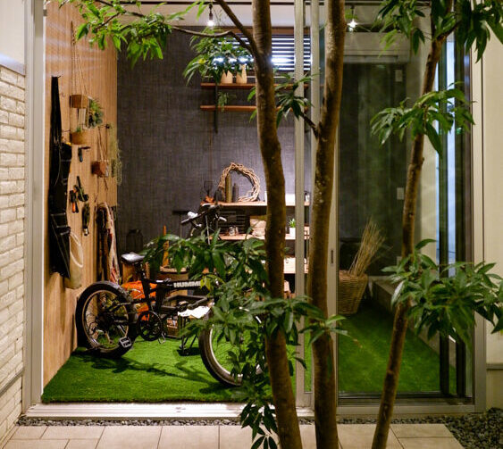 ガレージと繋がるレジャーコーナーは趣味のロードバイクのメンテナンスだけでなく、屋内でアウトドア気分を楽しむスペースとしても。子供だけでなく、大人も気分転換や家の中でワクワクを演出するスペースとしてご提案いたします。