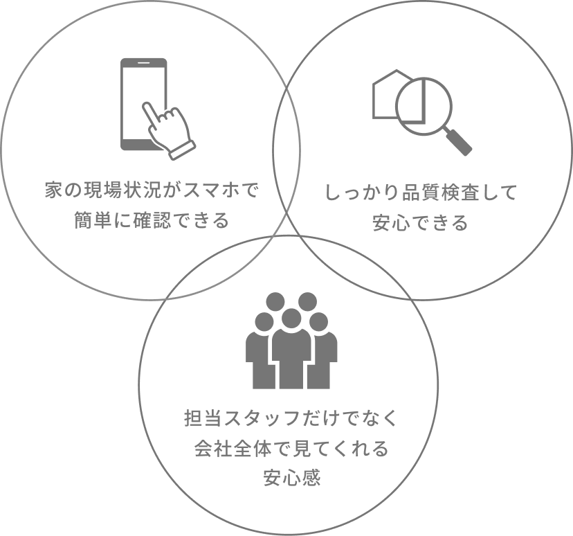 現場の進捗状況を確認しながら、施工時の状況や作業確認を実施し住宅履歴として一元管理しています。