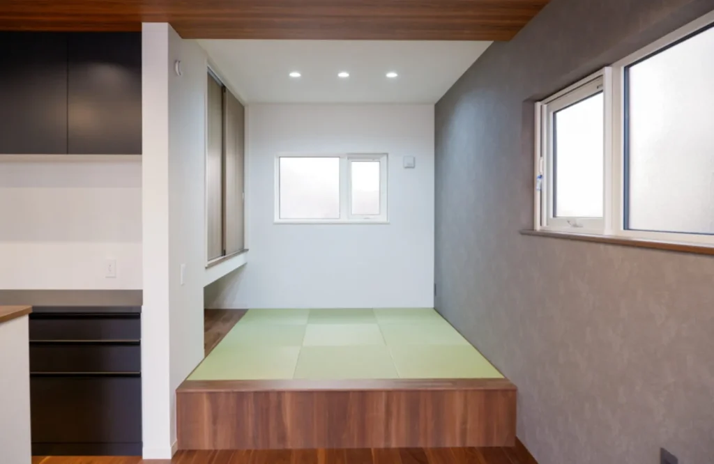フレキシブルな畳の小上がりは、子どもたちがLDKで走り回っていても気にせゆっくりアイロンを掛けられる家事室としても活躍。