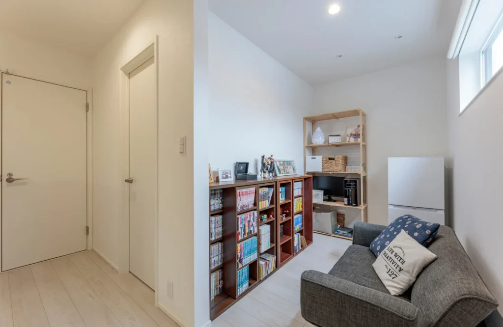 ご主人が希望した趣味の部屋は、2階の階段ホールに配置。扉を設けないオープンな空間にしたことで、フレキシブルに活用できます。
