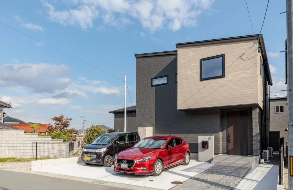外観はダークグレーをメインにシャープな印象でまとめ、「白をベースにした明るい室内の雰囲気とのギャップを楽しめるようにしました」とご主人。