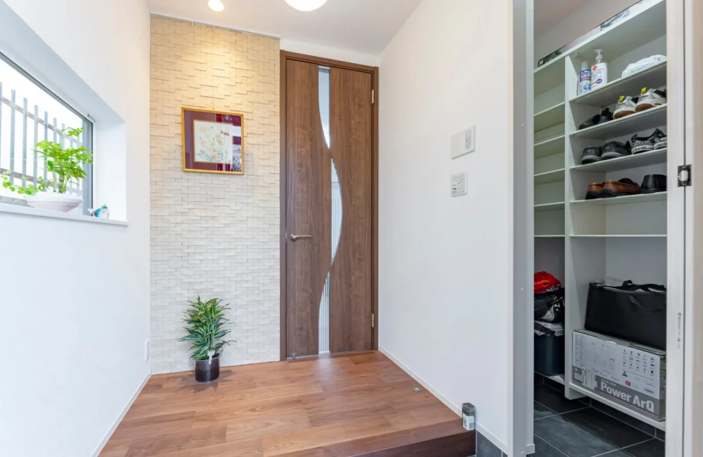 土間には大型のシューズインクロークを設けて、玄関はいつもすっきりと。