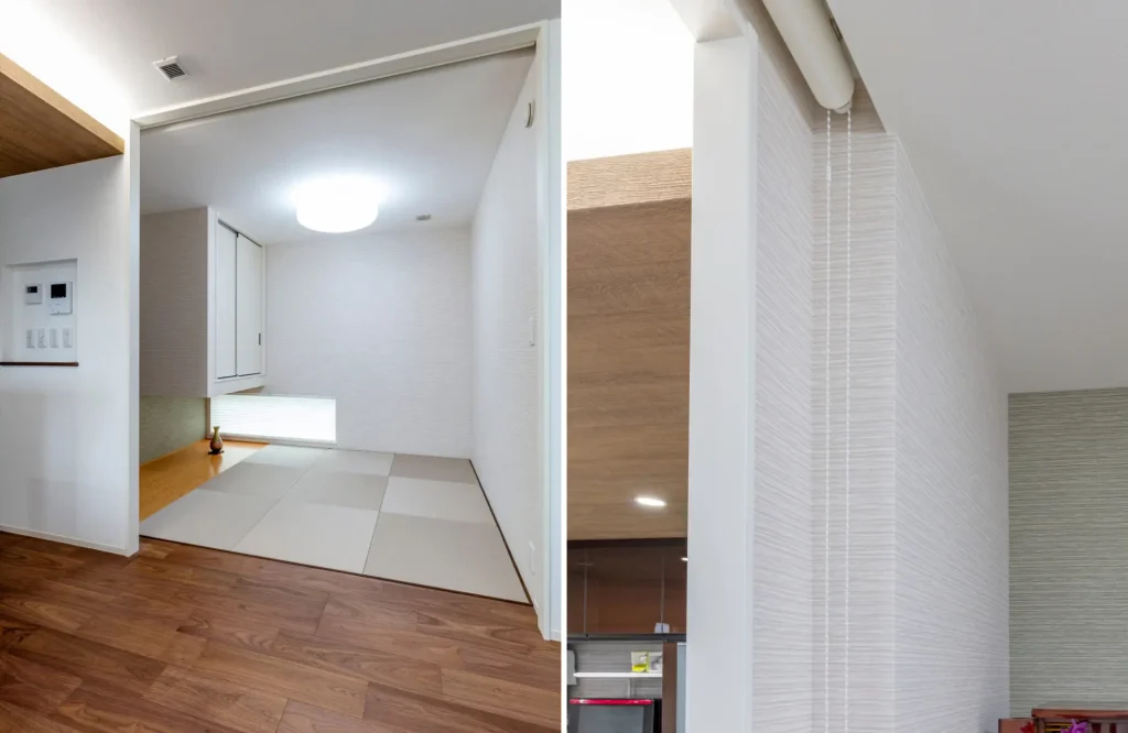 将来は1階だけでも生活できるように、LDKの隣に寝室にも使える和室を設置。