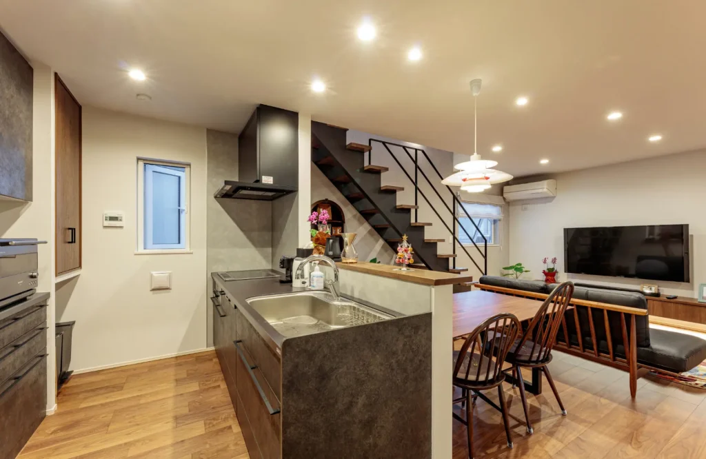 以前は壁付けだったキッチンを、リビングを見渡せる対面タイプに変更。