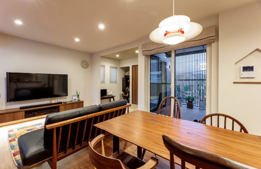 ダイニングの前には中庭バルコニーを設置。
