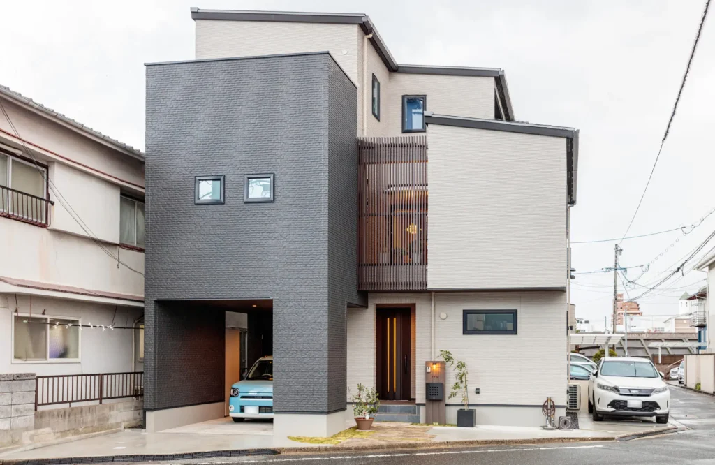 ビルトインガレージと、家の横に平面駐車場を確保。