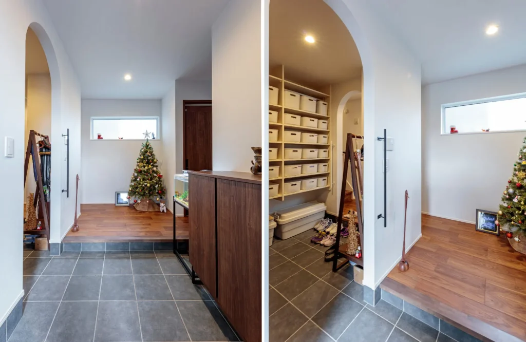 左手には土間続きのシューズインクローゼットを設置。