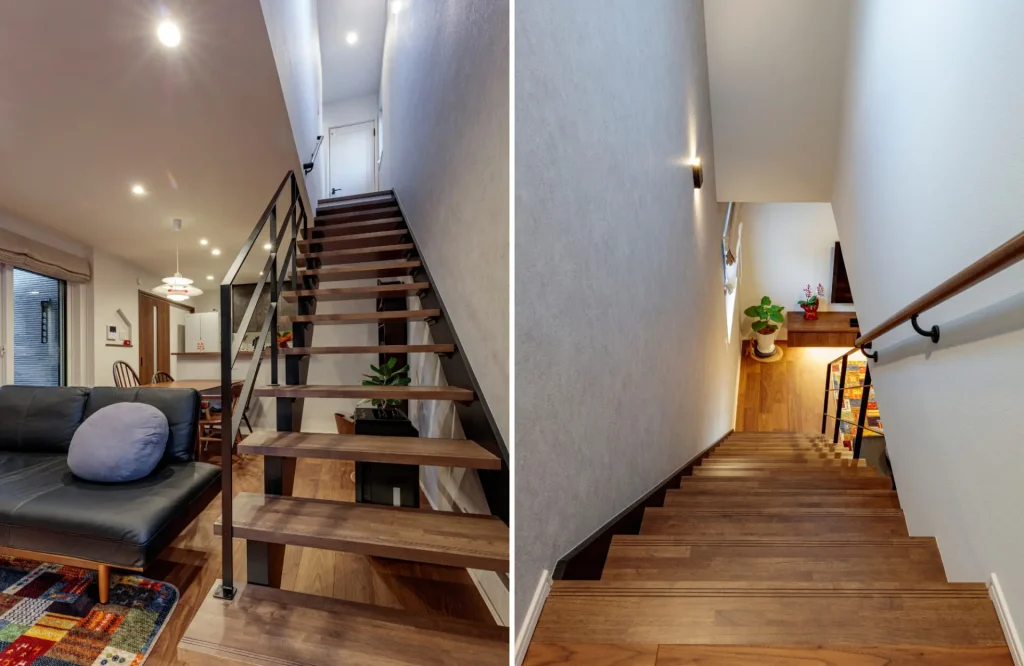 階段下の空間を広々と使える機能性とデザイン性を併せ持つスケルトン階段。